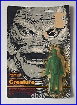 Up for sale is a vintage 3-inch figure of The Creature from the Black Lagoon that was released by Remco in 1980. The card has been signed by Creature actor Ricou Browning. Note: The package isn't in the best shape with creases, tears, and binds. The bubble is still attached to the card and has no cracking.